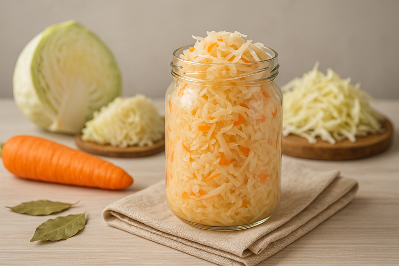 Квашеная капуста , благодаря своей естественной ферментации , это кладезь витаминов и пребиотиков (питание для микрофлоры). Она относится к ферментированным продуктам.