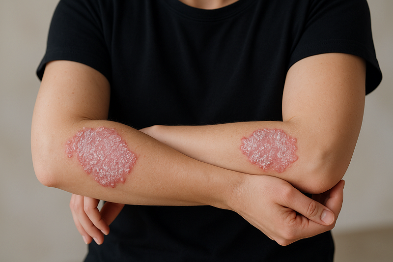 Псориаз - это иммуноопосредованное воспалительное заболевание и одно из самых распространенных хронических кожных заболеваний (12%) в мире. Он характеризуется красными, чешуйчатыми и утолщенными кожными поражениями, которые могут возникать на любом участке тела. Очень важно - все эти три критерия должны быть одновременно.
