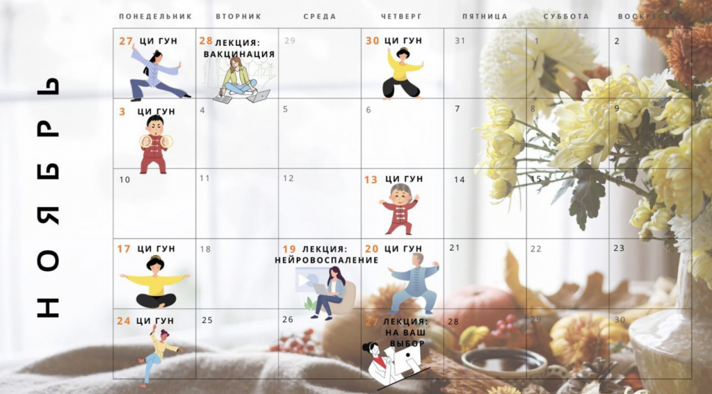 Любые из предложенных процедур и приёмов можно делать дома, самостоятельно, постепенно встраивая их в свой распорядок дня. Кроме того, на наших занятиях вы формируете свою систему оздоровления, выбираете из предложенных мер те, которые вам ближе, комфортнее. А мы помогаем овладеть этими навыками и научиться ими грамотно пользоваться.